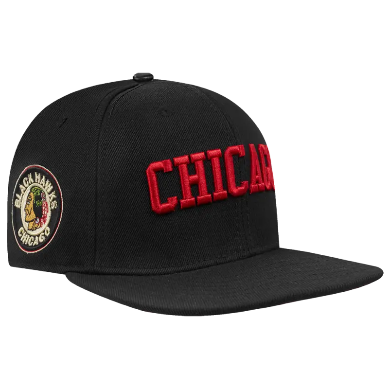 NHL CHICAGO BLACKHAWKS RETRO CLASSIC UNISEX WORDMARK LOGO WOOL SNAPBACK (BLACK)