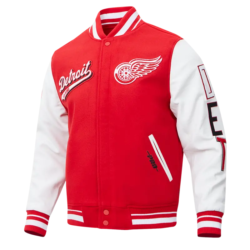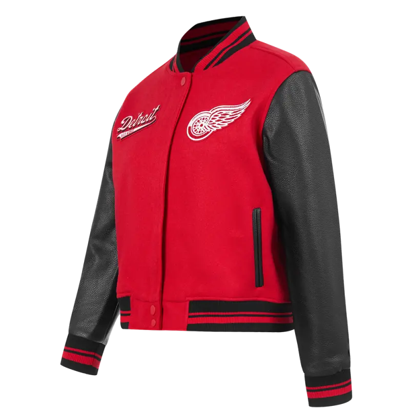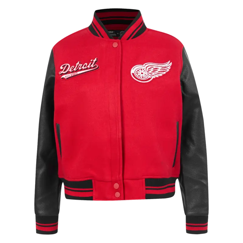 NHL DETROIT RED WINGS SCRIPT TAIL WOMEN’S WOOL VARSITY JACKET (RED\/BLACK)