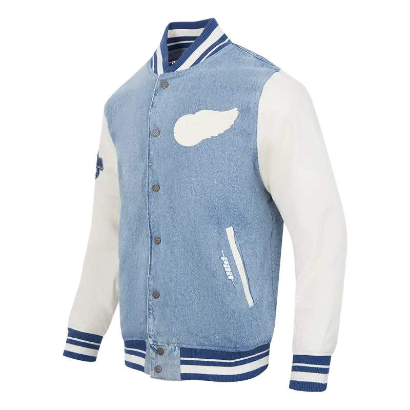 NHL DETROIT RED WINGS VARSITY BLUES MEN’S DENIM VARSITY JACKET (DENIM\/LINEN)