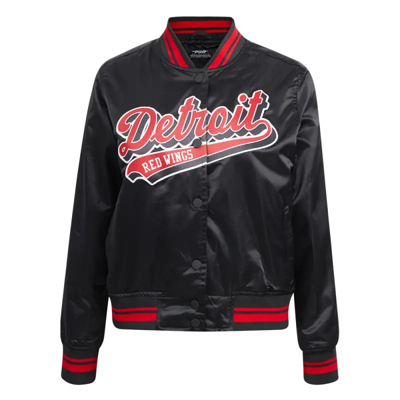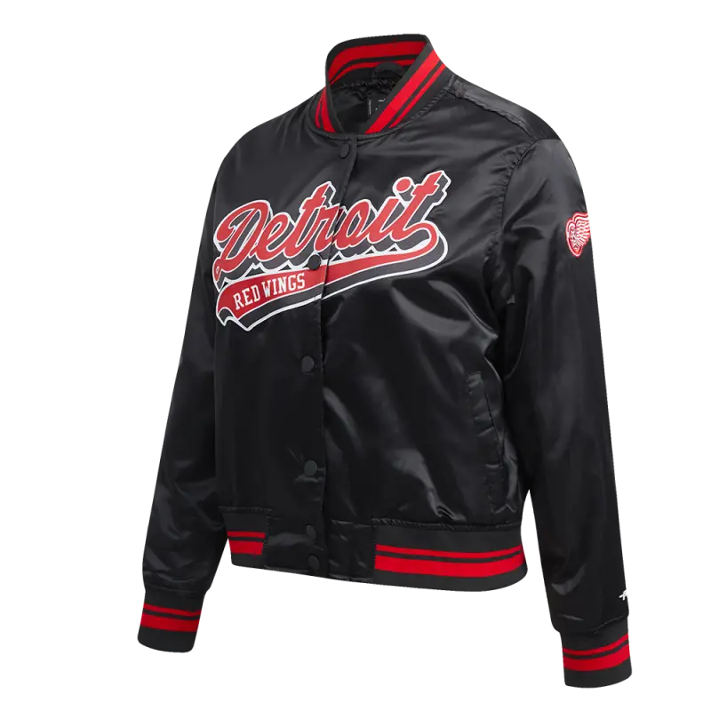 NHL DETROIT RED WINGS SCRIPT TAIL WOMEN’S SATIN JACKET (BLACK\/RED\/BLACK)