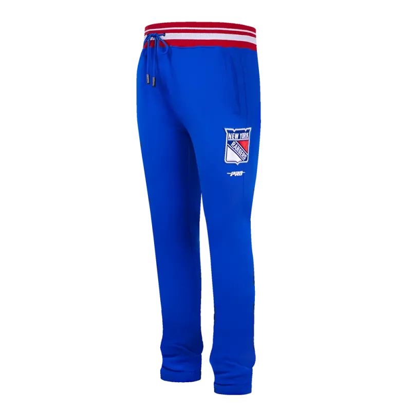 NHL NEW YORK RANGERS SCRIPT TAIL MEN’S RIB FLEECE SWEATPANT (ROYAL BLUE\/RED)