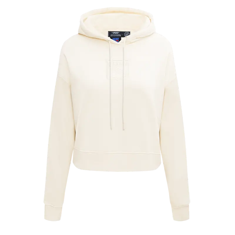 NHL NEW YORK RANGERS NEUTRAL WOMEN’S CROPPED PULLOVER HOODIE (EGGSHELL)