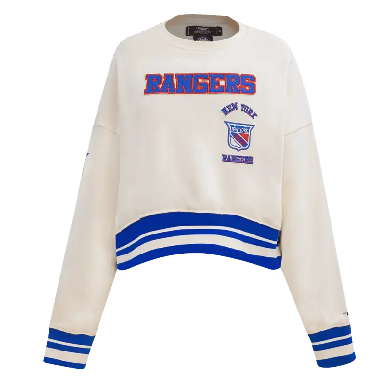 NHL NEW YORK RANGERS RETRO CLASSIC WOMEN’S RIB CREWNECK (EGGSHELL\/ROYAL BLUE)