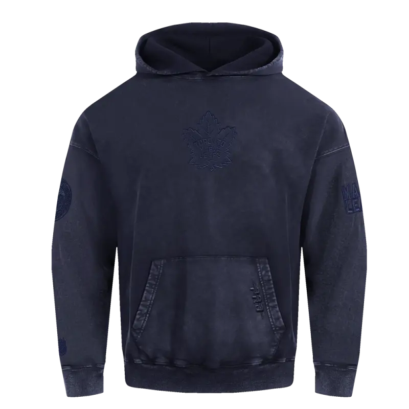 NHL TORONTO MAPLE LEAFS WASHED VANGUARD MEN’S ENZYME WASH DROP SHOULDER FT PO HOODIE (WASHED BLACK)