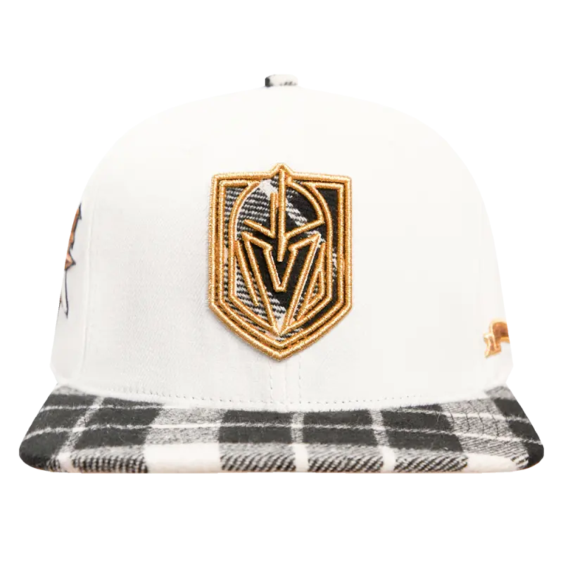 NHL VEGAS GOLDEN KNIGHTS PRO PREP PLAID BRIM WOOL SNAPBACK HAT (WHITE)