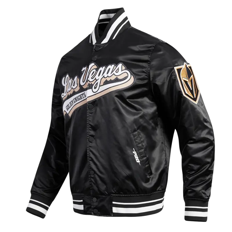 NHL VEGAS GOLDEN KNIGHTS SCRIPT TAIL MEN’S SATIN JACKET (BLACK)