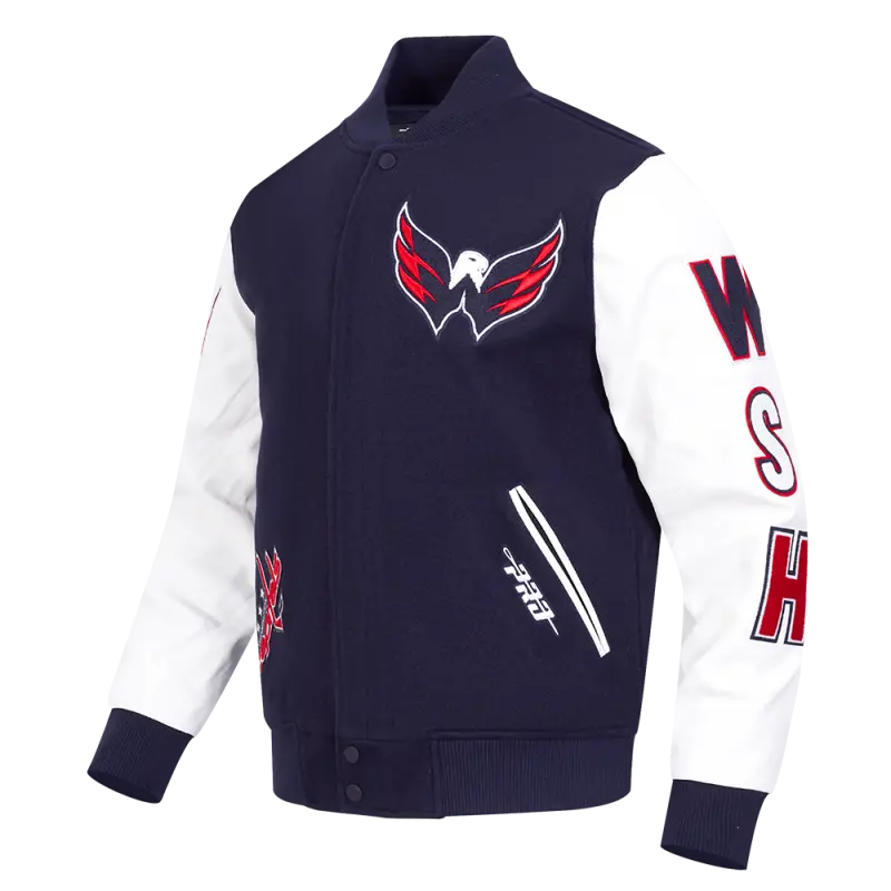 NHL WASHINGTON CAPITALS CLASSIC MEN’S WOOL VARSITY JACKET (MIDNIGHT NAVY\/WHITE)