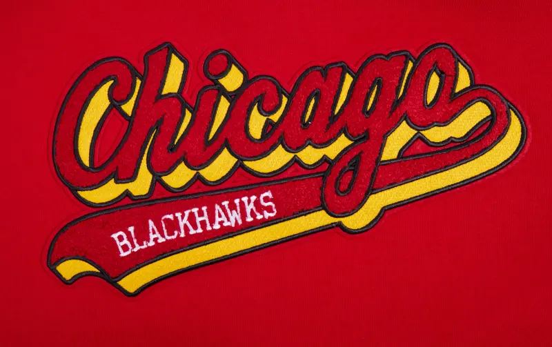 Home / Shop / Chicago Blackhawks / NHL CHICAGO BLACKHAWKS SCRIPT TAIL MEN’S RIB FLEECE PULLOVER HOODIE (RED\/BLACK)