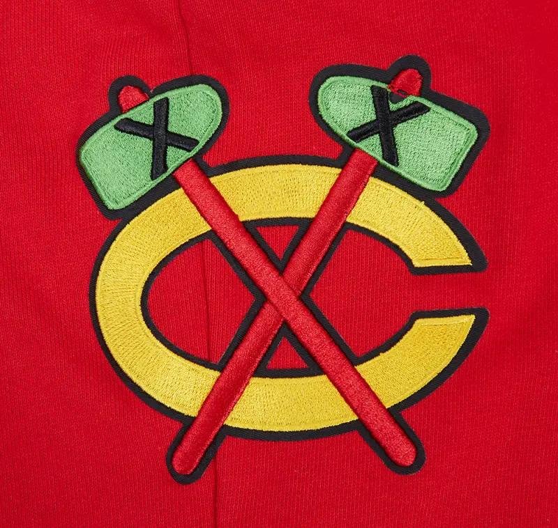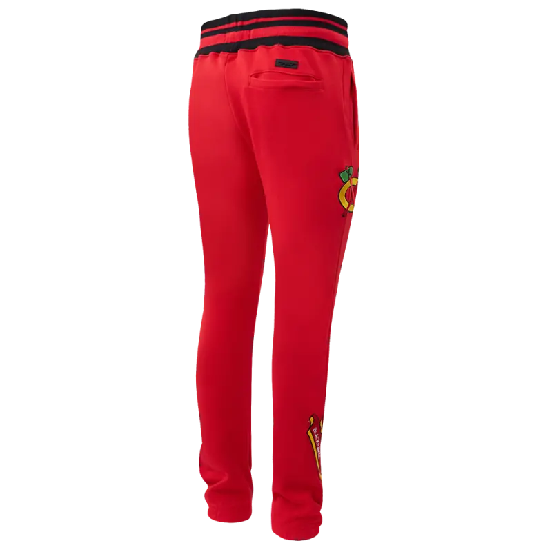 NHL CHICAGO BLACKHAWKS SCRIPT TAIL MEN’S RIB FLEECE SWEATPANT (RED\/BLACK)