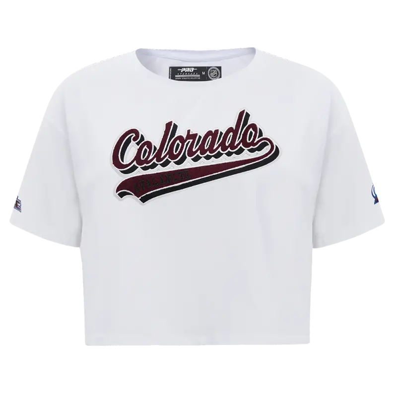Home / Shop / Colorado Avalanche / NHL COLORADO AVALANCHE SCRIPT TAIL WOMEN’S SJ BOXY TEE (WHITE)