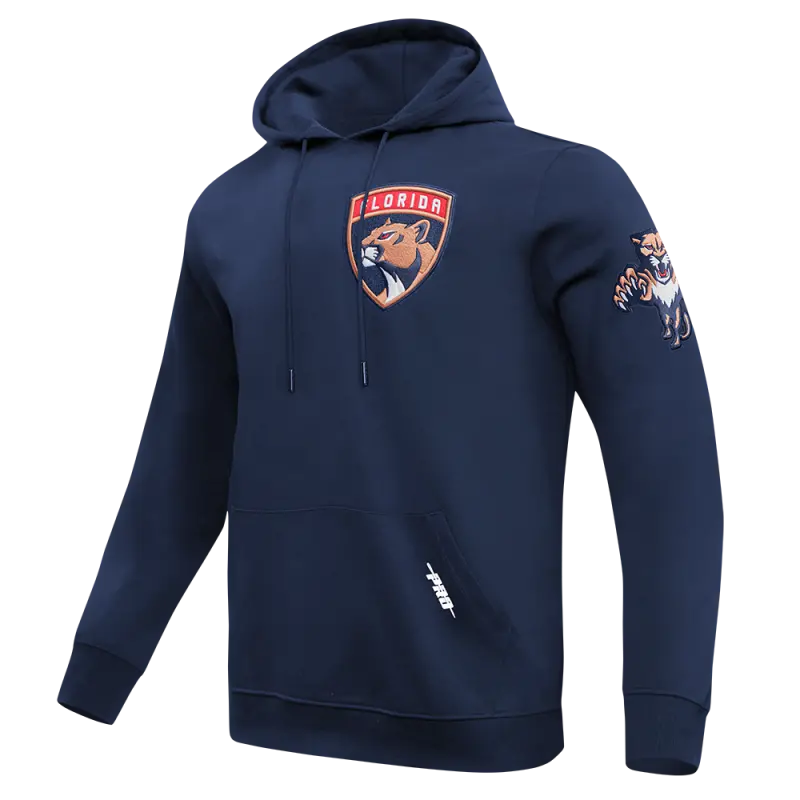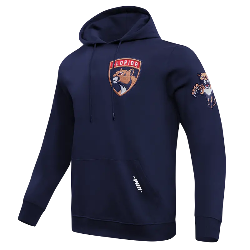 NHL FLORIDA PANTHERS CLASSIC CHENILLE MEN’S DOUBLE KNIT PULLOVER HOODIE (MIDNIGHT NAVY)